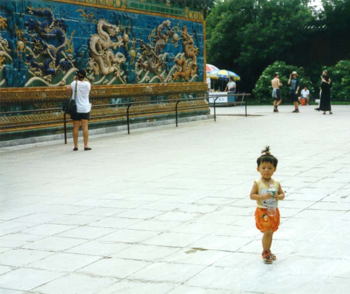 child with a sculpture at Gu Gong (The Forbidden City) in Beijing.